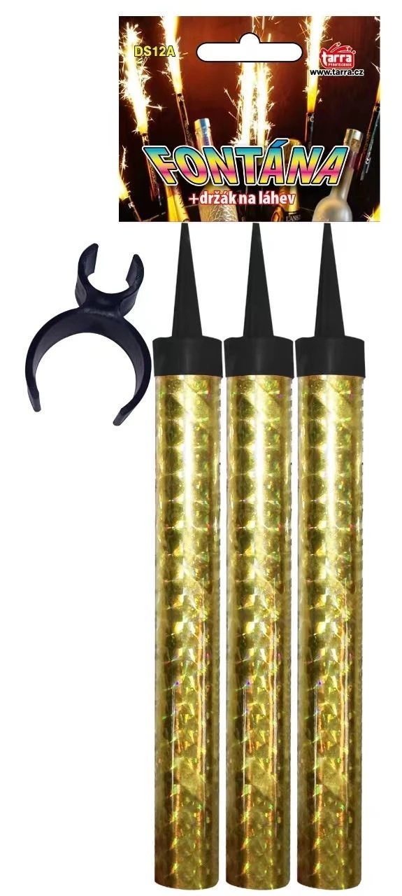 One package contains 3 pieces of inner gold party fountains with a length of 12 cm with a bottle holder.