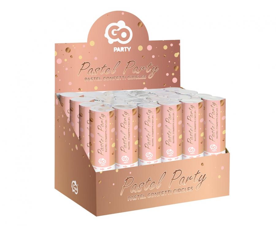 Confetti cannon 15 cm large with pastel wheels.