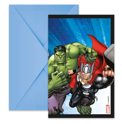 Invitations and envelopes with the Avengers motif, measuring 9.5x14.5cm.
