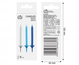 Birthday set of 24 candles in blue color.