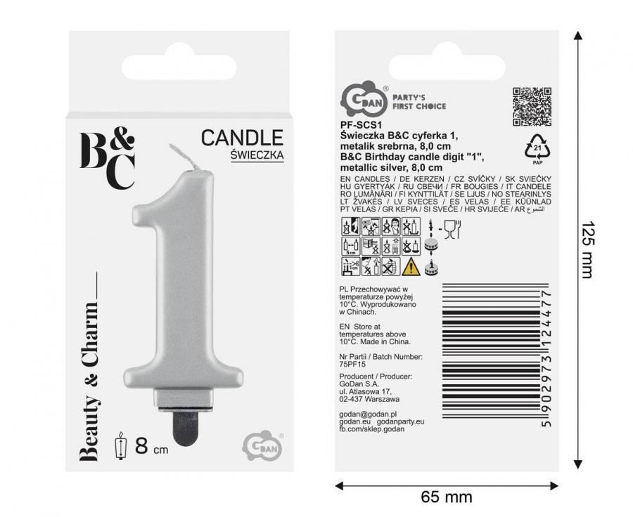 Cake candle number 1 silver 8cm - 1a.png Cake candle number 1 silver 8cm - 97540.jpg