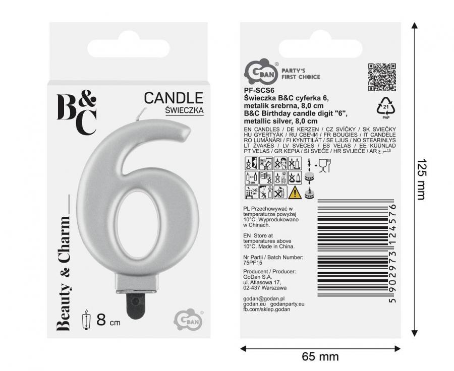 Candle in the shape of a number in silver color, size 8cm.