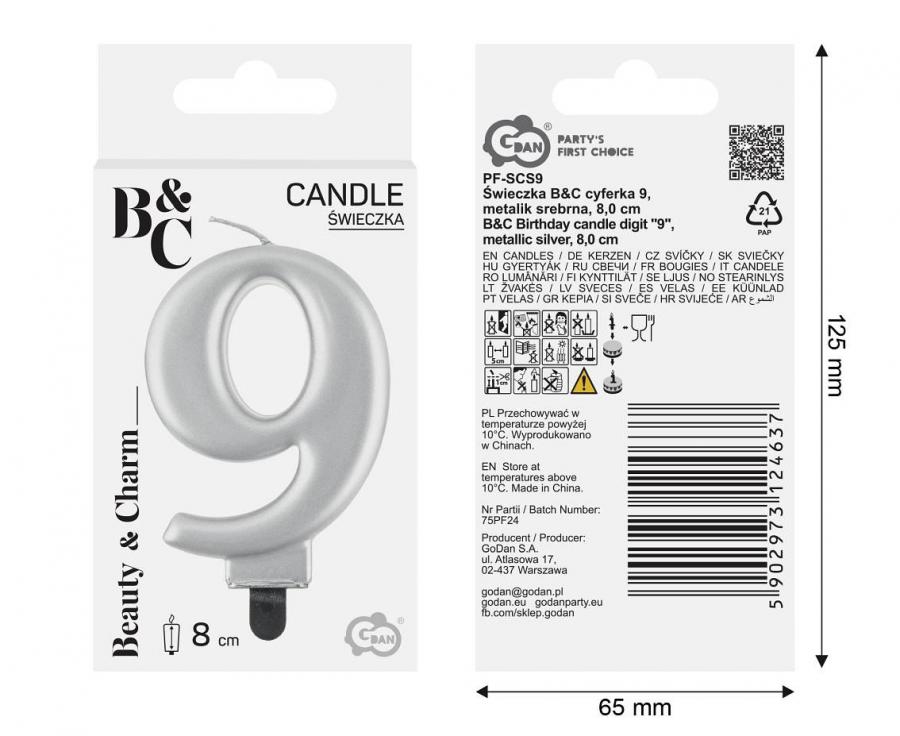 Cake candle number 9 silver 8cm