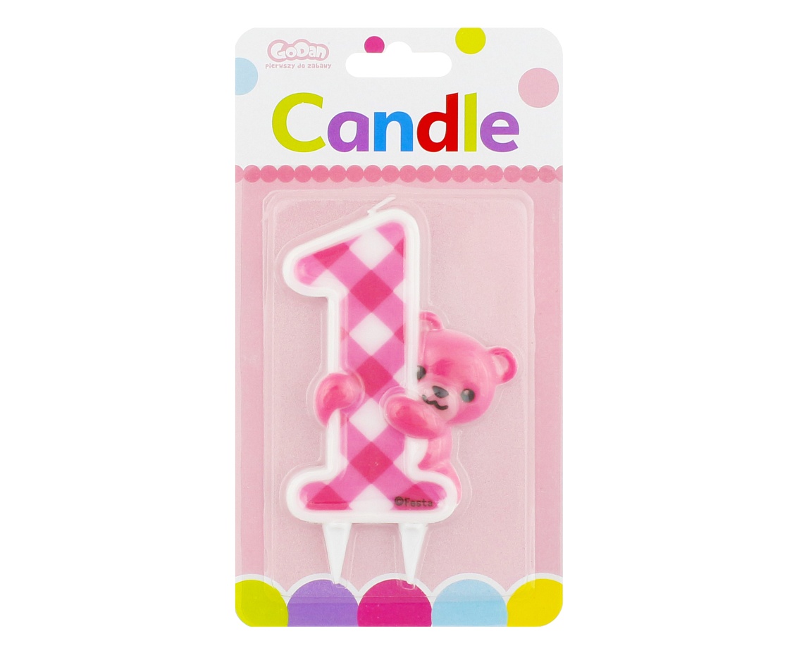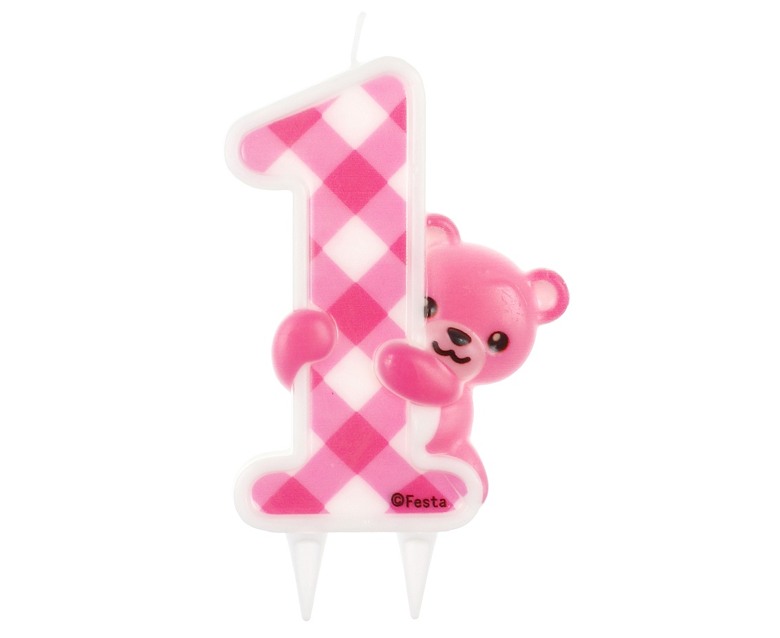 Cake candle "Pink Teddy", number 1