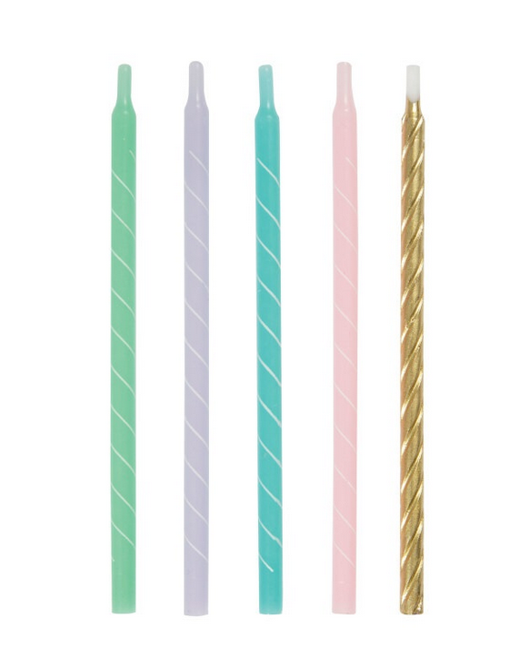 Colorful pastel candles - spirals, 12pcs, 13cm long.