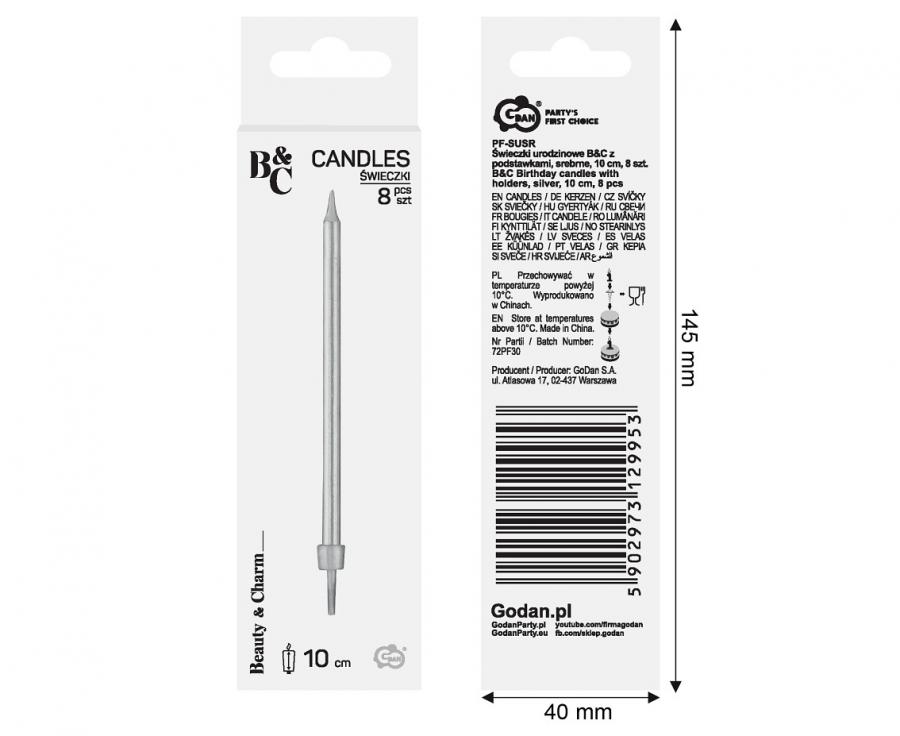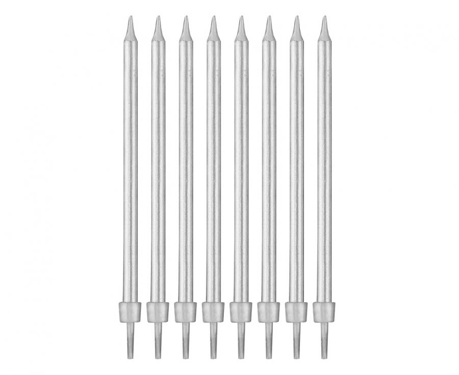 Birthday set of 8 candles in silver color.