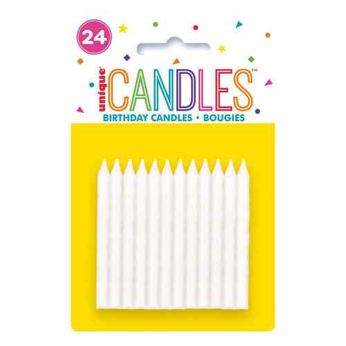 Colorful pastel white candles - glitter spiral, 24pcs, 7cm long.