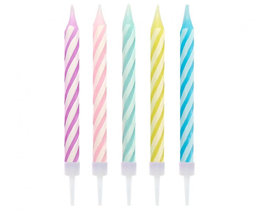 RBP560002A | Birthday cake candles with stripes, 24 pcs, 4 colors |