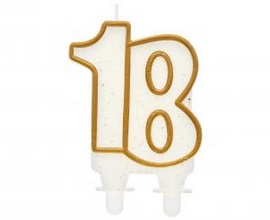 Candle -shaped candle 18 in white with golden edges and lamps.