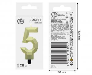 Candle in the shape of the number 5 in gold color.