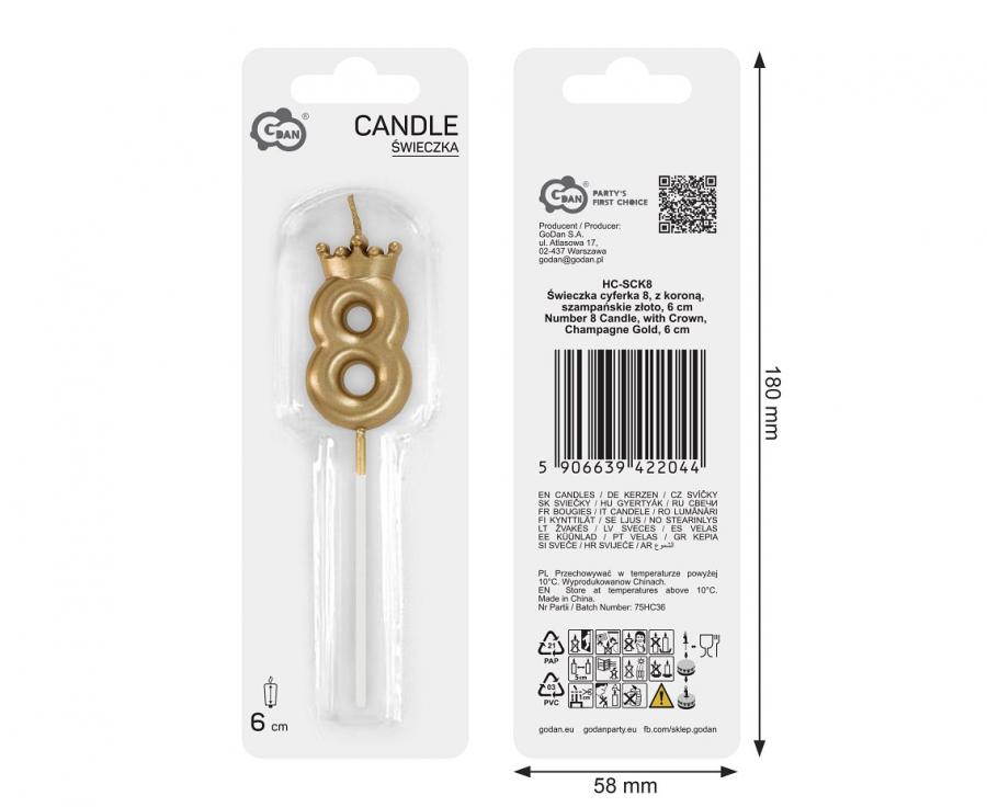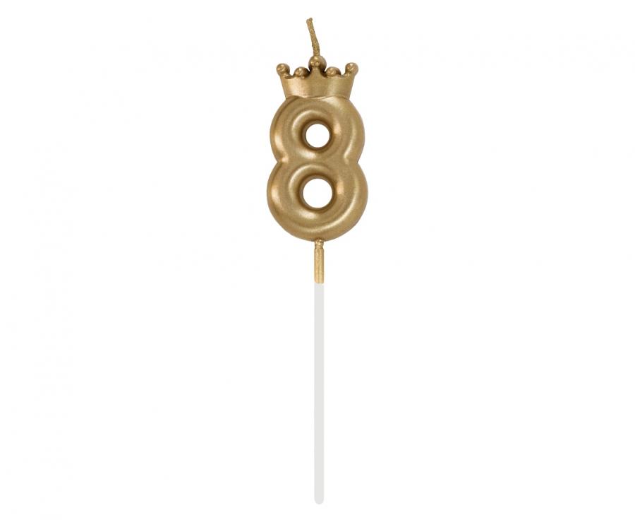 RPF-SCZ8 | Cake candle number 8 golden metallic, 8cm |
