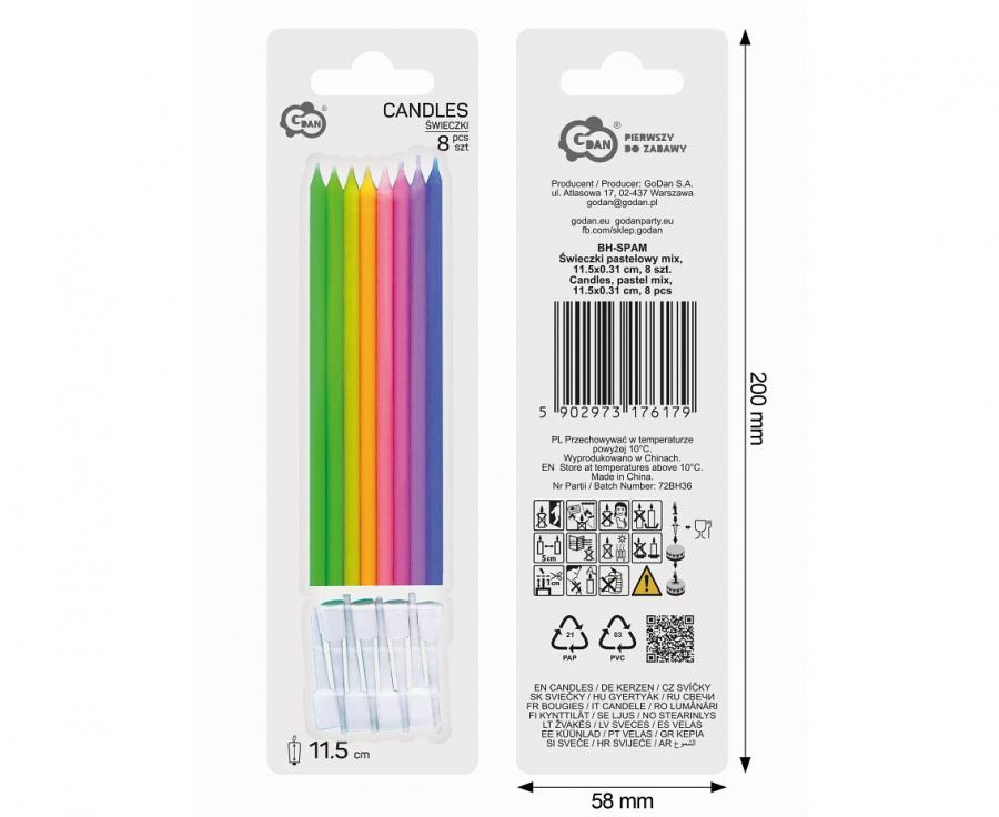 RBP560002A | Birthday cake candles with stripes, 24 pcs, 4 colors |