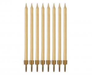 Birthday set of 8 candles in gold color.