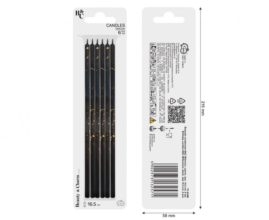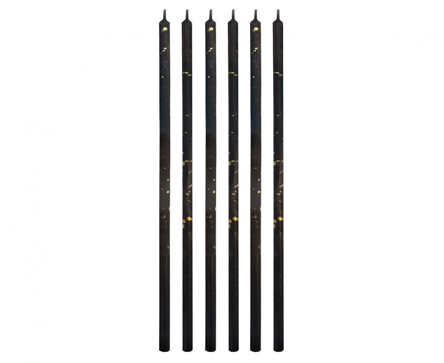 Birthday set of 6 candles in black color with gold marbling.