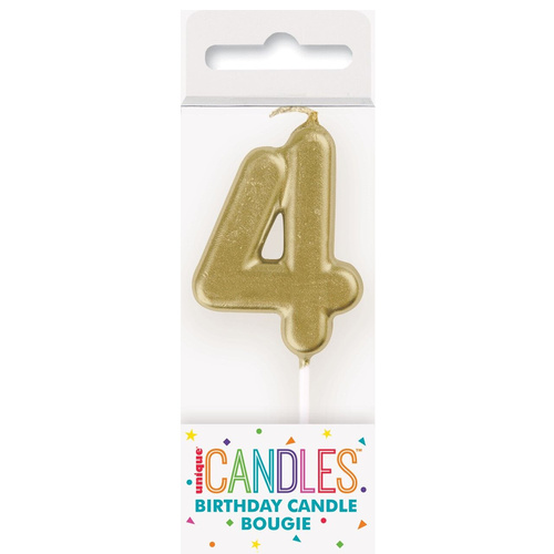 Candle in shape of number 4 in gold color, 5cm long.