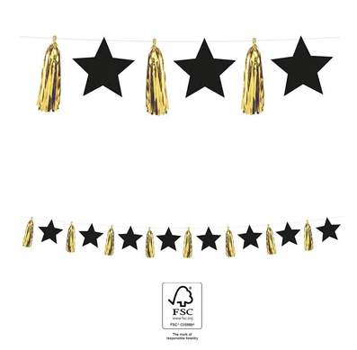 U43778 | Garland - golden stars, pink narrow, 183cm |