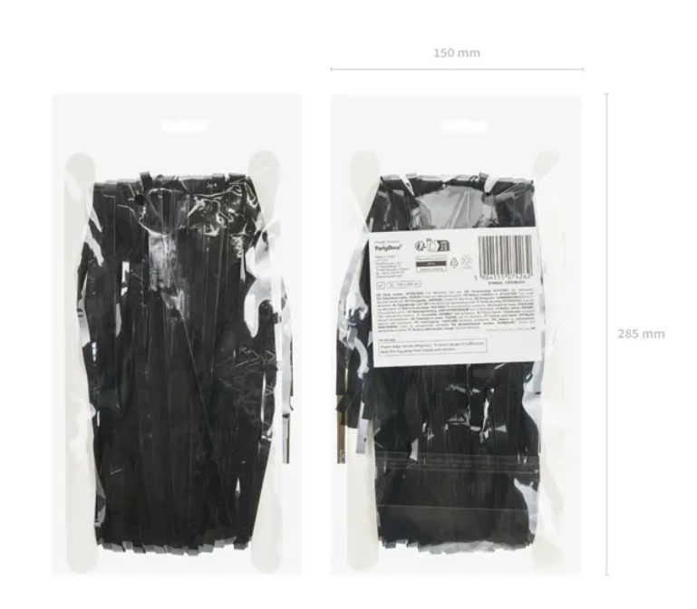 Glossy party curtain in black, width approx. 100cm, length approx. 2 meters.