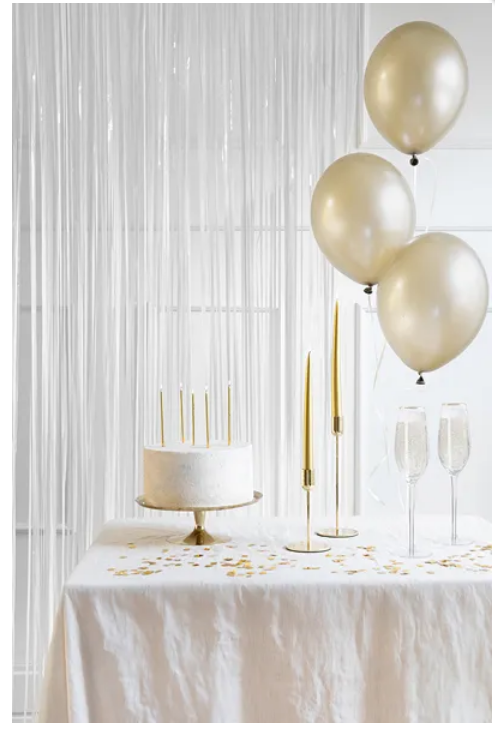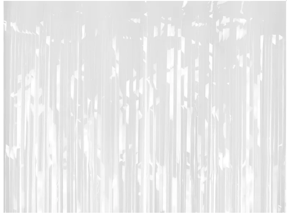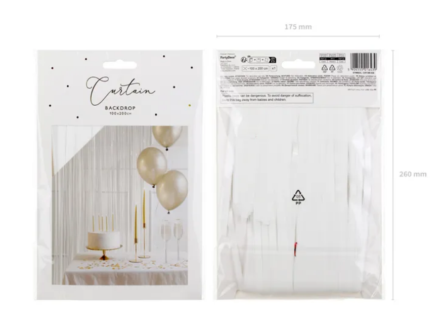 Glossy party curtain in white, width approx. 100cm, length approx. 2 meters.