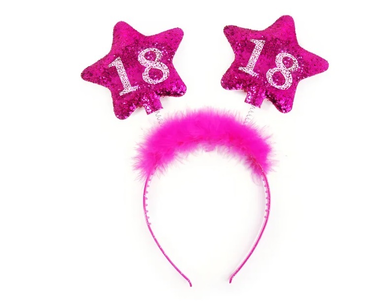 Headband in pink color with shiny print No. 18.