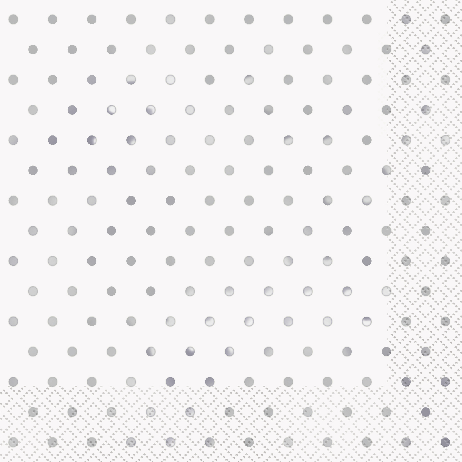 Elegant Silver Foil Dots Paper Luncheon Napkins 16pcs - Foil Stamped. 33x33 cm