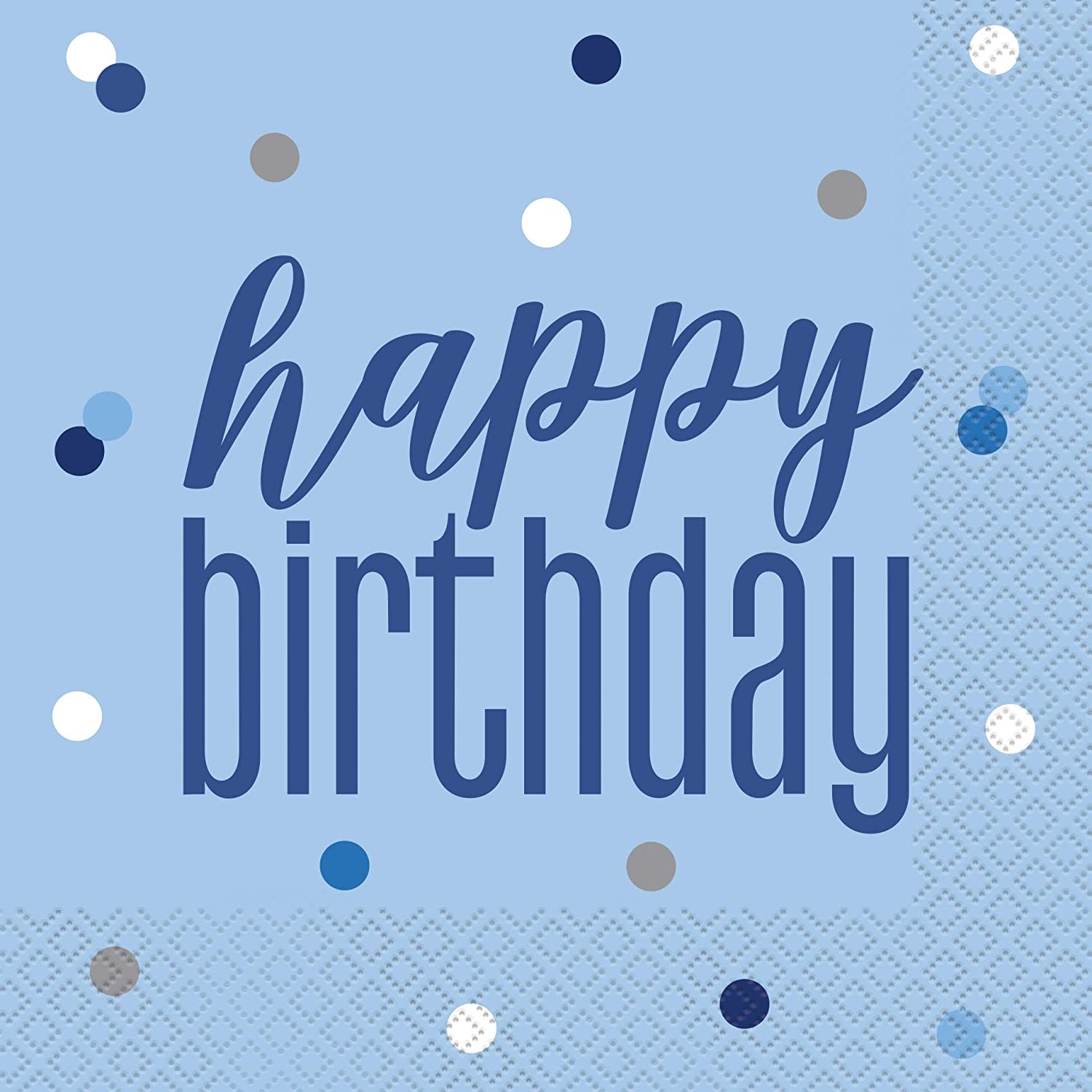 Blue & Silver Glitz Happy Birthday Luncheon Napkins, 16 pcs.