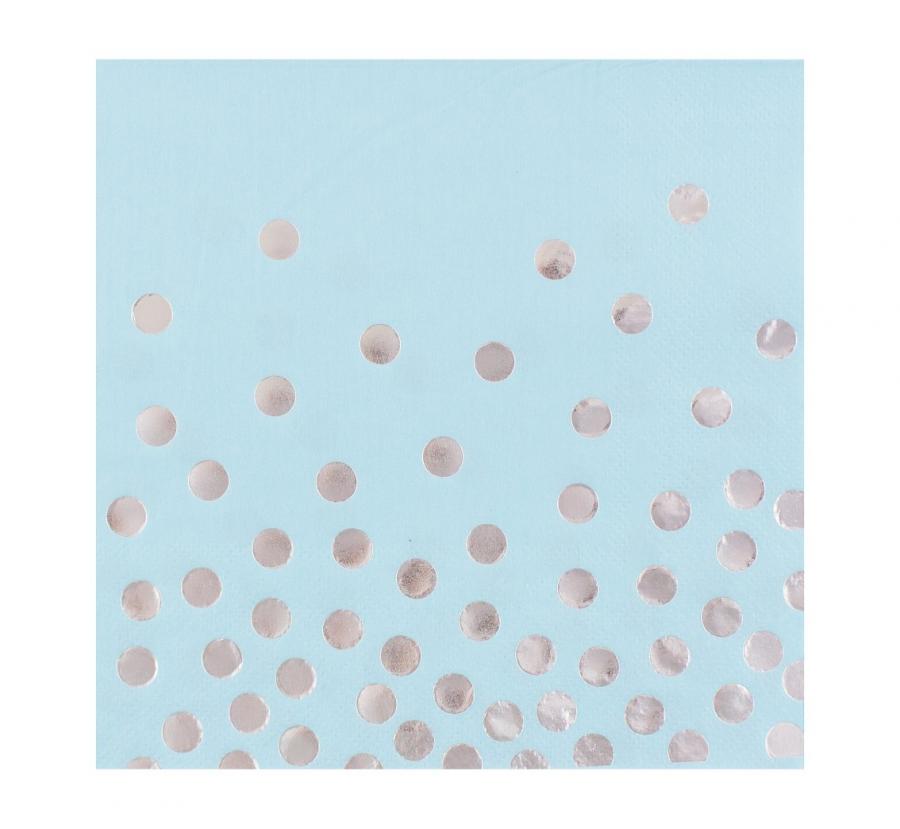 12 pcs of decorative paper napkins in blue color with silver confetti.