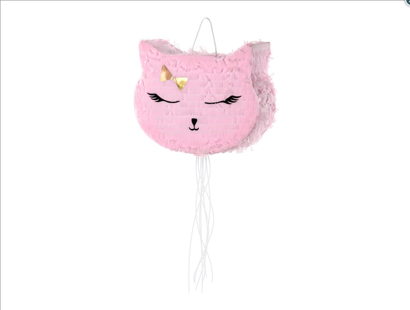 Pinata is a game consisting of breaking a specially prepared paper package, in this case in the form of a pink cat's head, which is filled with sweets.