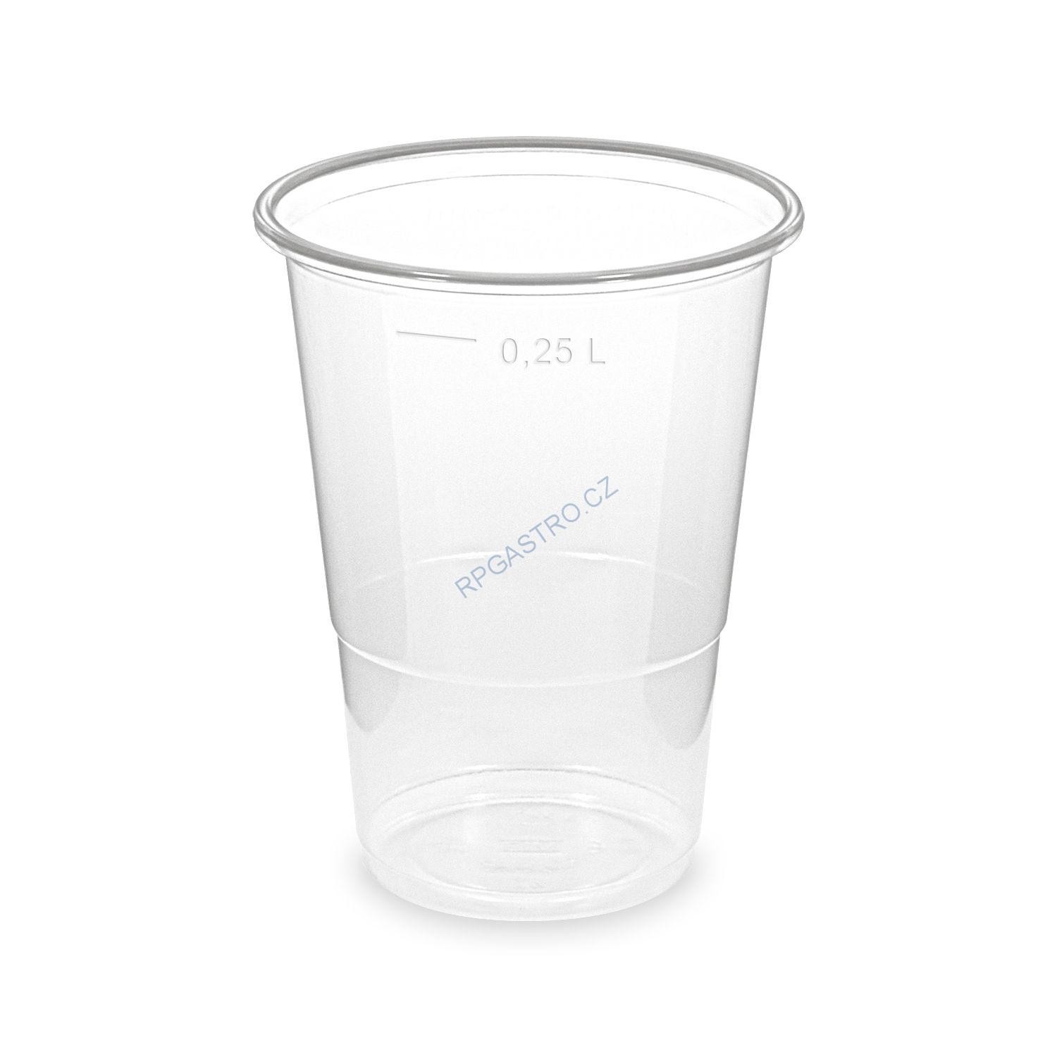 Quality plastic cup with a 0.25 l line, suitable for cold and hot drinks.