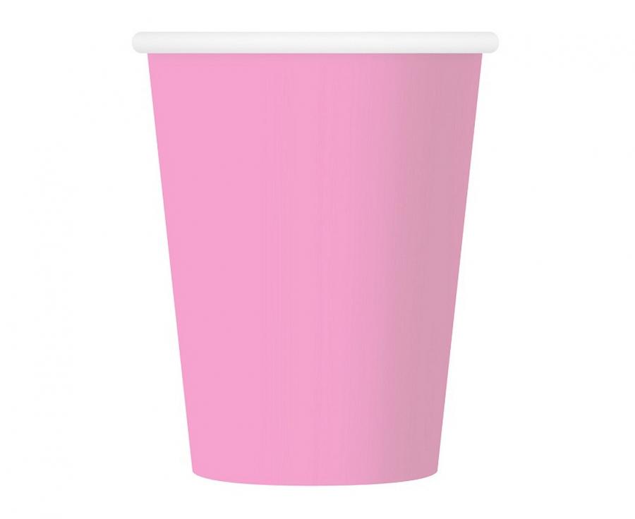 Set of six decorative paper cups in pink with a volume of 250 ml.