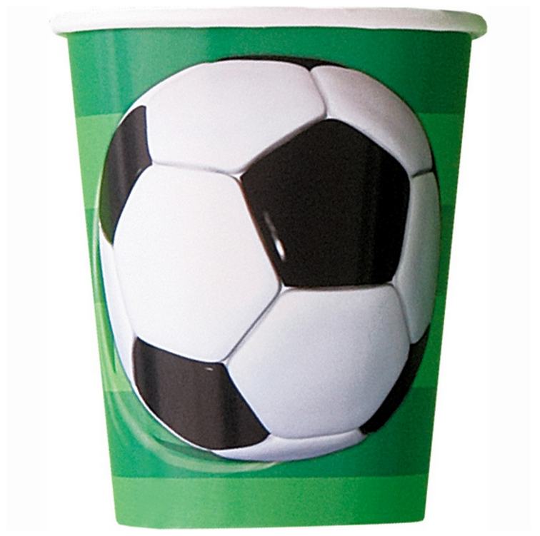 Paper cups with a football motif, intended only for cold liquids. The contents of the cup are 270 ml.