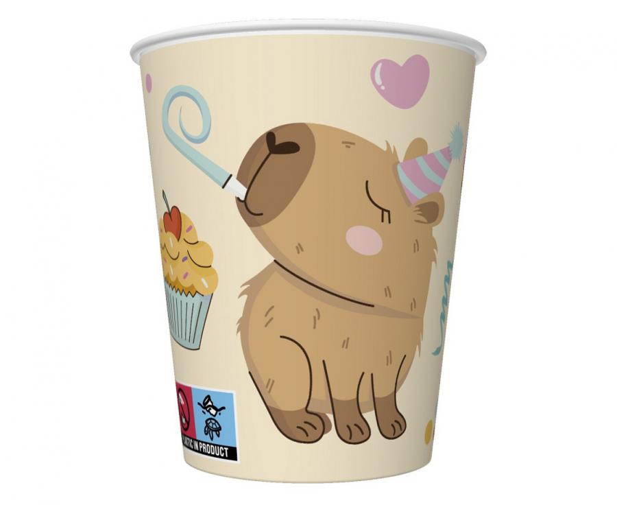 Set of eight 250ml capybara paper cups.