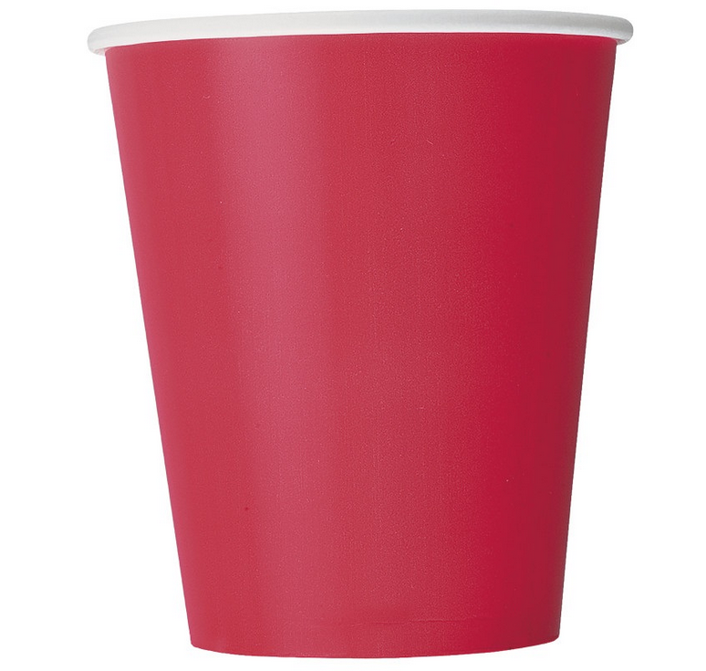 Paper cups in red color, intended only for cold liquids. The content of the cup is 266 ml.