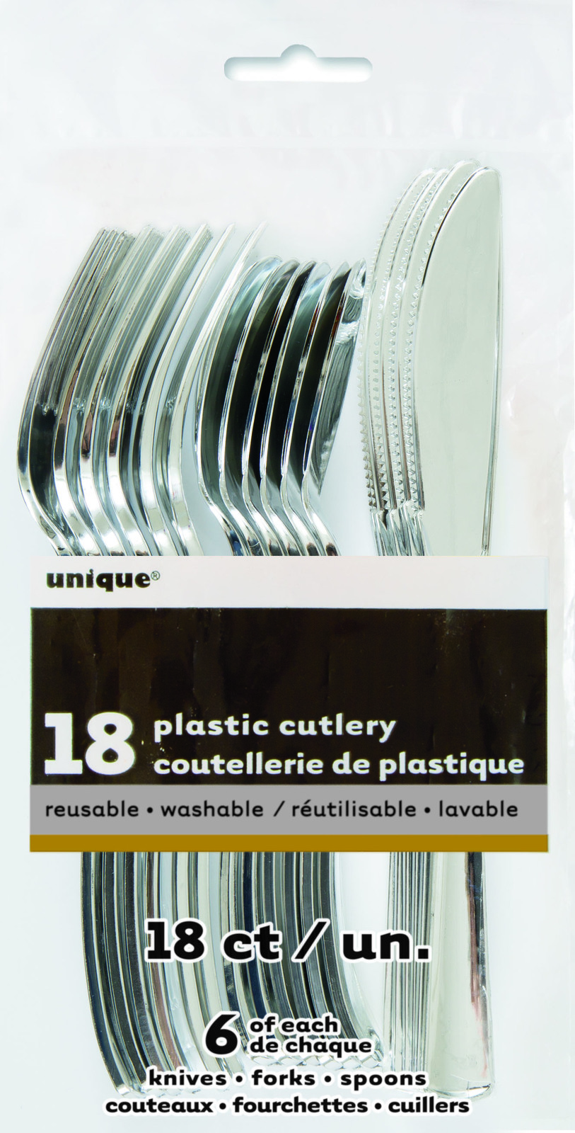 U39506 | Cutlery plastic - silver, 18 pcs. |