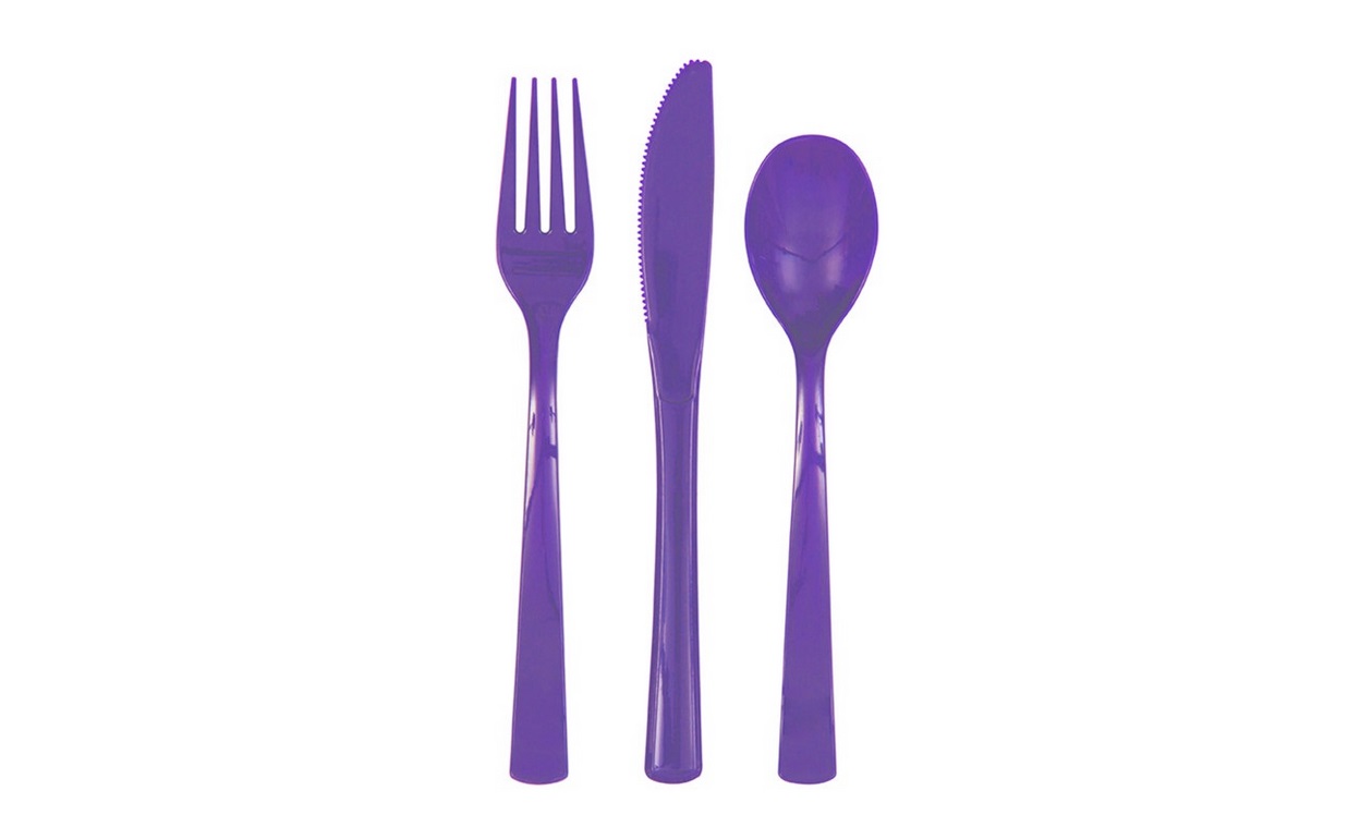 Plastic cutlery - neon purple, 18 pcs
