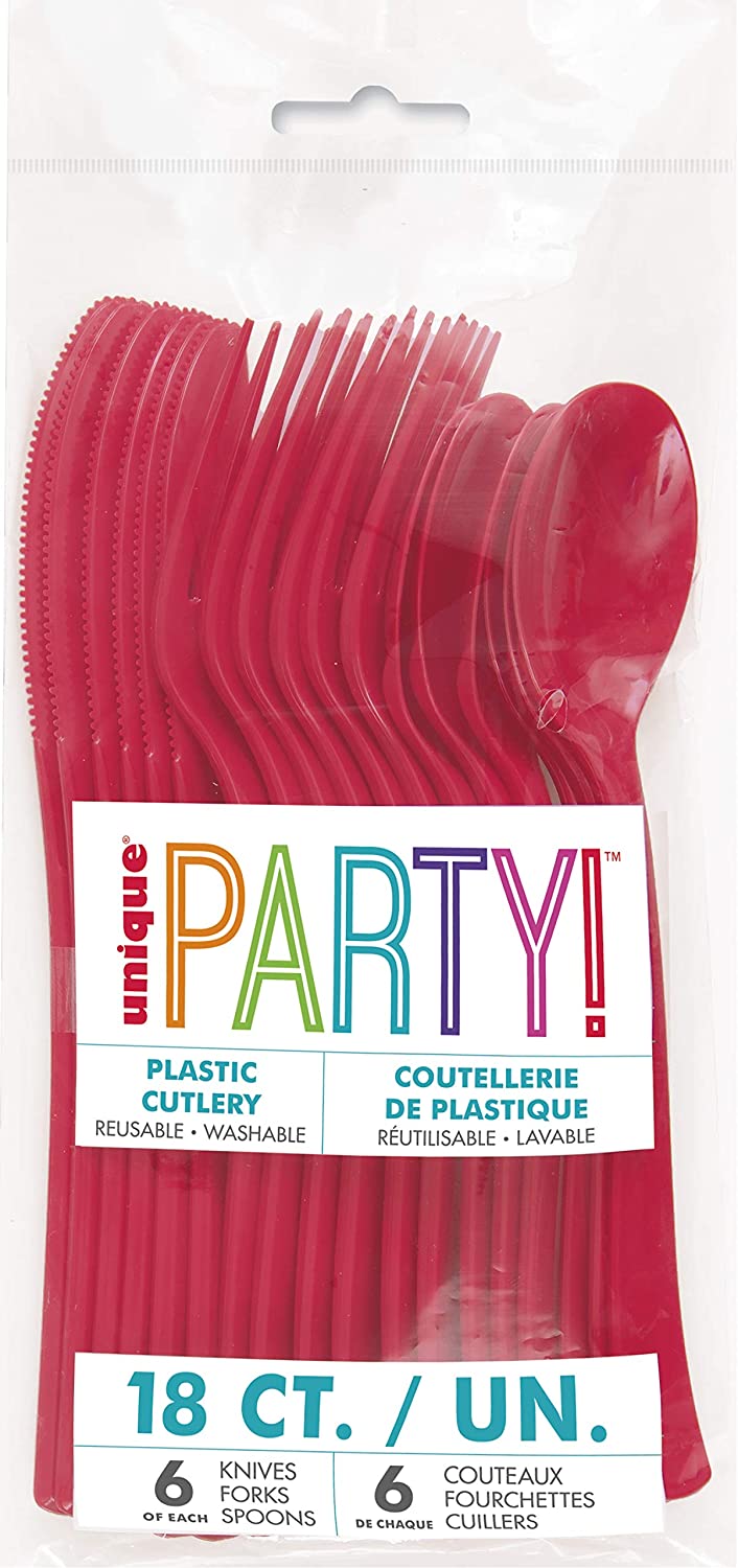 U39490 | Plastic cutlery - pink, 18 pcs |