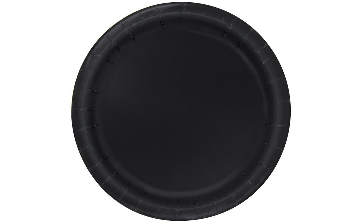 Set of sixteen paper plates with a diameter of 23cm in black.