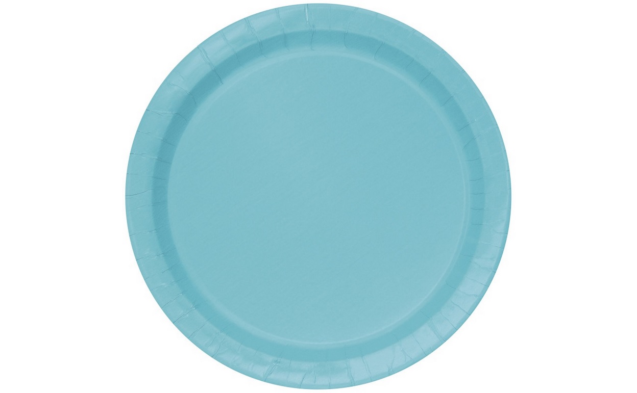 Set of eight paper plates with a diameter of 18 cm in blue-green color.