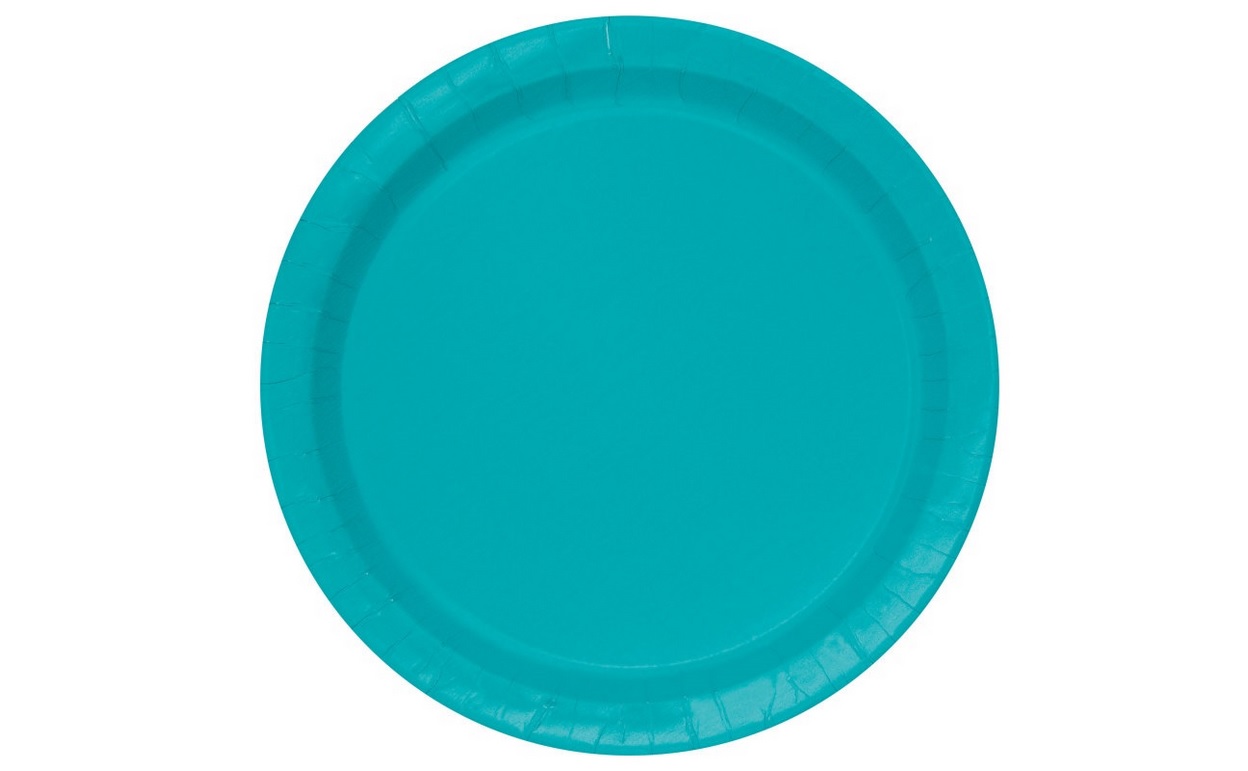 Set of eight paper plates with a diameter of 23cm in blue.