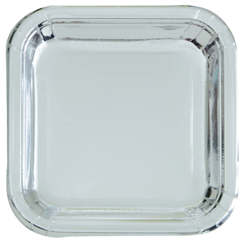 Paper Plate - Silver Shiny Square 18cm, 8pcs