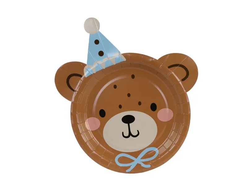 Paper plates in the shape of a teddy bear.