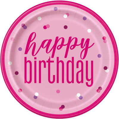 Pink paper plates Glitz HB 23cm, 8 pcs