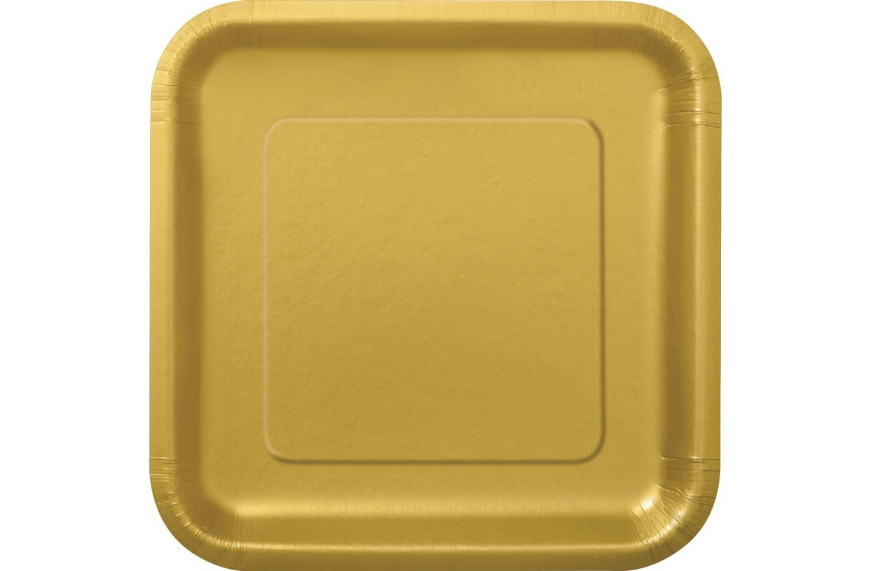 Set of 14 ECO paper plates measuring 23cm x 23cm in gold color.
