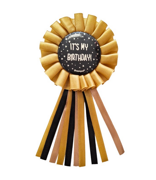 Birthday brooch in gold-black color with the inscription "It´s my Birthday".