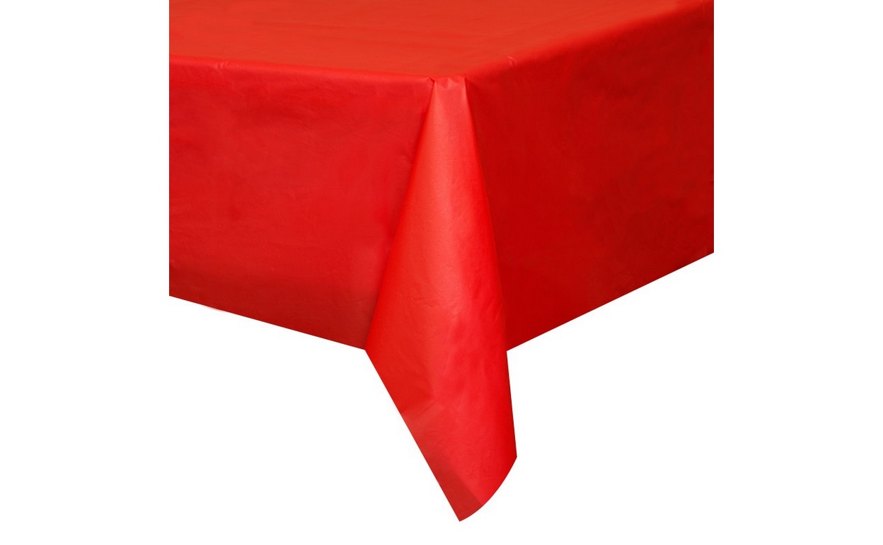 Foil tablecloth in red with dimensions 137x274cm.
