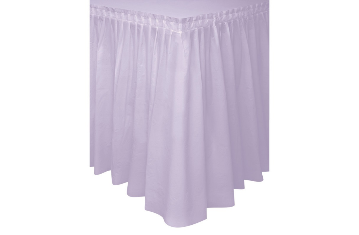Plastic tablecloth - skirt in lavender color with dimensions 427x74cm.