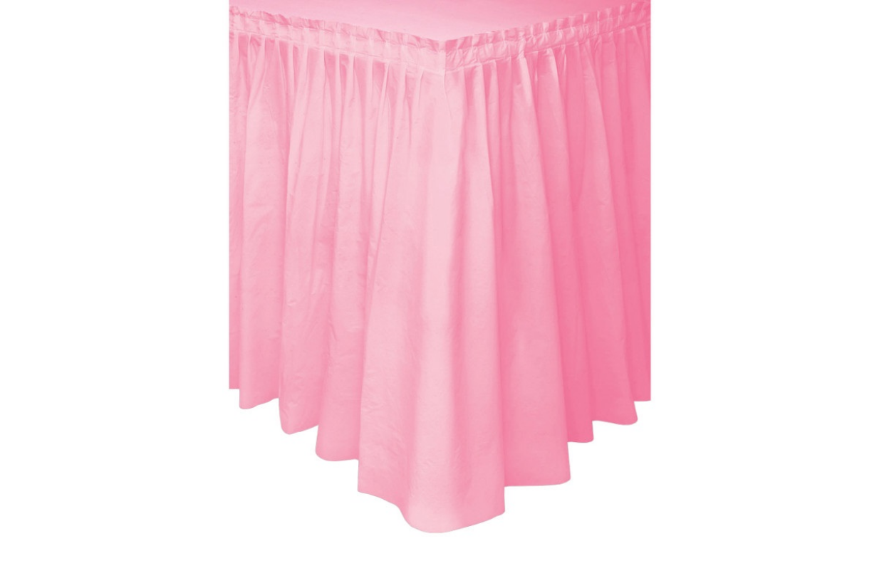 Plastic tablecloth - pink skirt with dimensions 427x74cm.