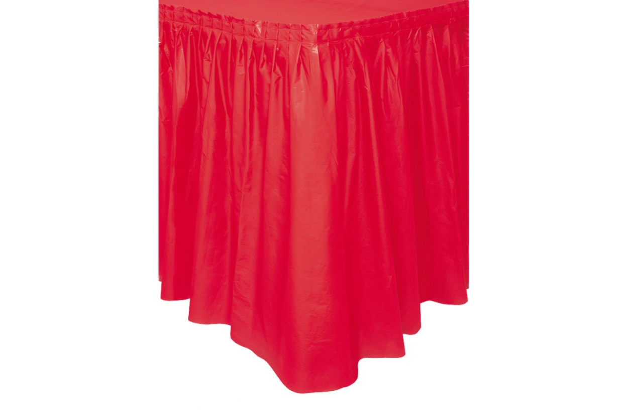 Plastic tablecloth - skirt in red with dimensions 427x74cm.