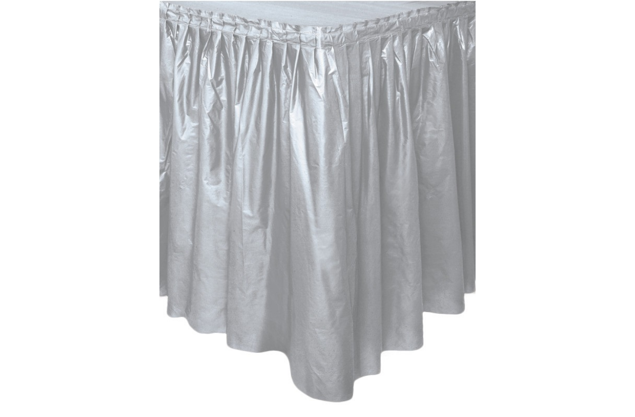 Plastic tablecloth - skirt in silver color with dimensions 427x74cm.