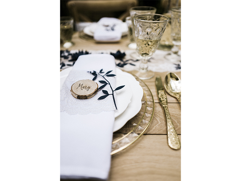 Paper decoration - Branch with leaves, dark navy blue