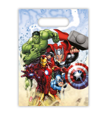 Plastic bag measuring 16.5 cm x 23 cm with Avengers motif.
